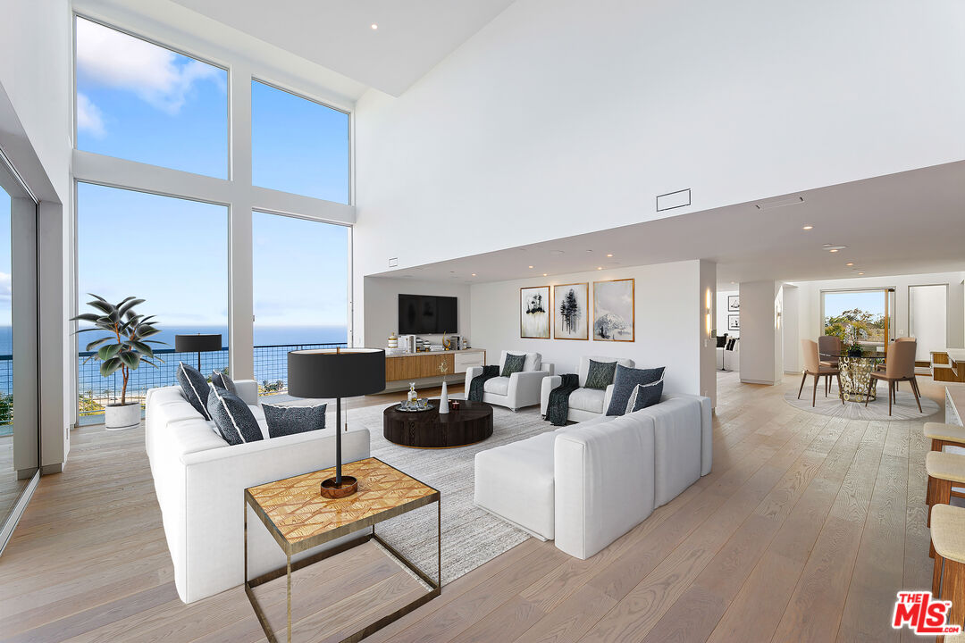 Offering the tranquility only the quiet hills can deliver, while boasting panoramic white water ocean views of Point Dume, Zuma Beach, and beyond, this stunning brand new construction has been thoughtfully crafted down to the last detail. Elevated, clean, and sleek yet warm and intimate, the space exudes an effortless synthesis that accommodates those who love to entertain just as much as they revel in deep relaxation and serenity - true livable luxury. Upon entering the first level, take in the expansive views via the floor to ceiling glass windows and doors, amplified by the open floor plan and framed by the wide plank White Oak wood floors and vaulted ceilings. Top of the line appliances and finishes abound in the gorgeous gourmet kitchen, complete with two sinks and dishwashers, ample storage, and more. Inspired by that ultimate Southern California indoor/outdoor lifestyle, find the yard just off the family room and kitchen complete with refined sitting area, sublime fire pit and luminous pool. Adjacent to the kitchen, a bespoke wine storage and tasting corner awaits before ascending the architecturally striking stair case to the upper level where the breathtaking views endure and the elegant and sumptuous Primary bedroom and bathroom and remaining bedrooms are located. To top off this extraordinary gem, the entire home is Solar Powered, Smart Home equipped, and includes an EV charging station. Don't miss out on this incredible opportunity of unparalleled coastal luxe living